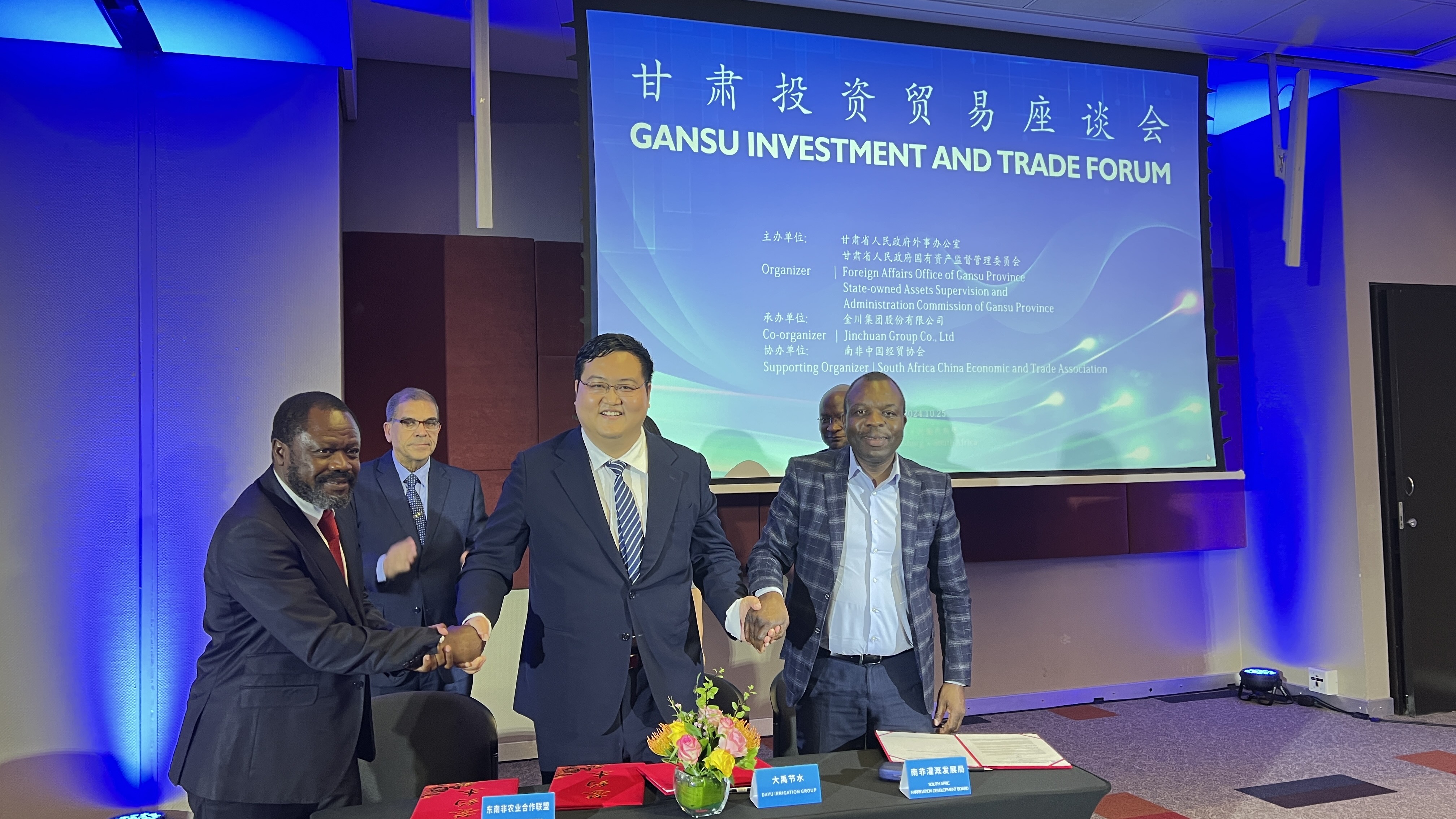 在甘肃省委书记、省人大常委会主任胡昌升见证下,6t体育节水集团在南非约翰内斯堡与东南非农业合作同盟、南非浇灌生长局、中国收支口银行甘肃分行等多家机构签署合作协议。
