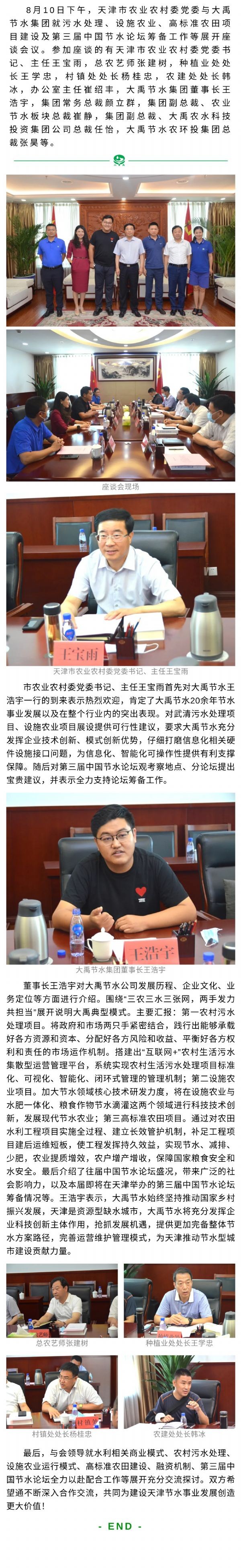 天津市农委主任王宝雨等会见6t体育节水董事长王浩宇一行