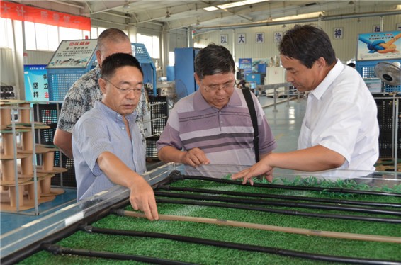 甘肃省水利水电学校校长陈军武一行在6t体育节水滴灌带(管)生产车间旅行考察