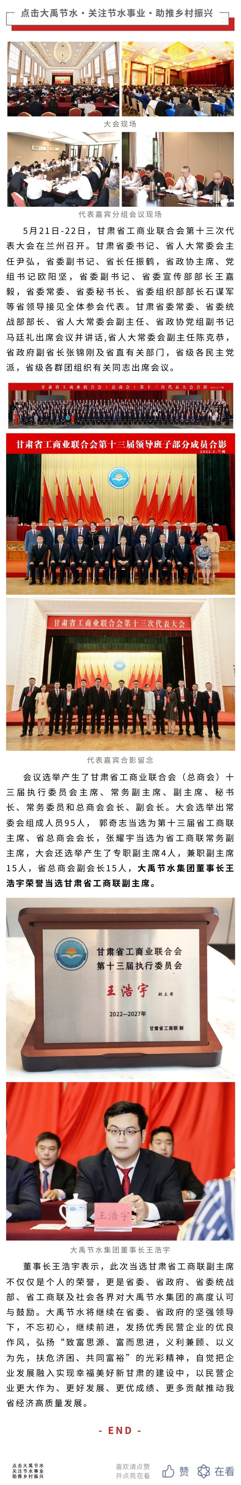 6t体育声誉| 6t体育节水集团董事长王浩宇声誉中选甘肃省工商联副主席