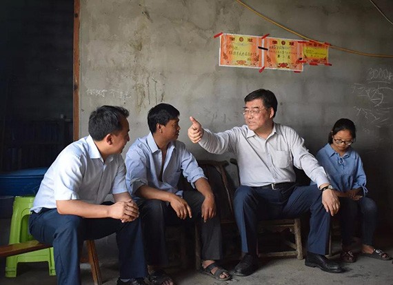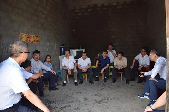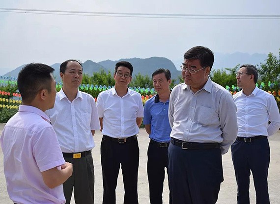 ▲集团公司党委书记王冲(左三)陪同水利部副部长田学斌(右二)在重庆市巫溪县调研扶贫攻坚事情
