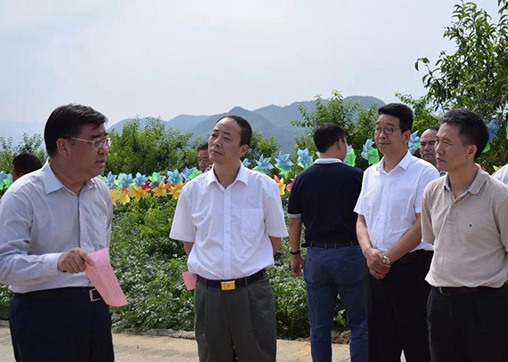 ▲水利部副部长田学斌、农水司司长王爱国一行调研外地经果林生长情形