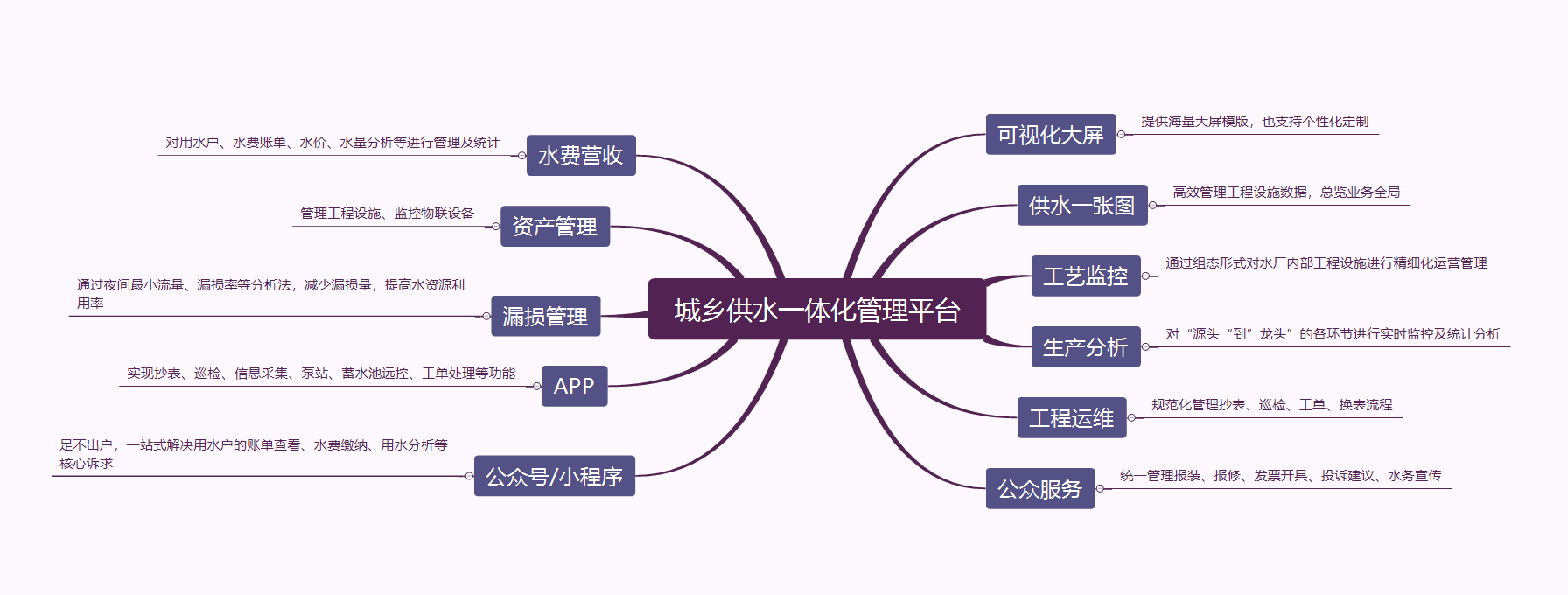 ÏÖÔÚ³ÇÏ繩ˮһÌ廯SaaS²úÆ·ÒÑÍê³ÉMVP°æ±¾£¨×îС»¯¿ÉʵÑé²úÆ·£¬Minimum Viable Product£©£¬²¢ÔÚ¶à¸öÏîÄ¿ÖÐÂ䵨¡£²úƷͨ¹ýÄ£¿é»¯µÄӪҵרÌâ¡¢Á÷³Ì»¯ÔËά¡¢Êý×Ö»¯¹Ü¿Ø£¬ÓÐÓÃÌáÉýÁËË®ÖÊ´ï±êÂÊ¡¢¹©Ë®°ü¹ÜÂÊ¡¢Ë®·ÑÊÕ½ÉÂÊ£¬½µµÍÁ˹ÜÍøÂ©ËðÂÊ¡¢¹©Ë®Éú²ú±¾Ç®¡¢ÈËÁ¦ÔËάʱ¼ä±¾Ç®£¬ÔöÇ¿Á˳ÇÏ繩ˮ·þÎñÖÊÁ¿£¬ÊµÏÖ¡°Í¬Ô´¡¢Í¬Íø¡¢Í¬ÖÊ¡¢Í¬·þÎñ¡±µÄÄ¿µÄ£¬°ü¹ÜÁ˹©Ë®Ò»Ì廯³¤Ð§ÔËÐУ¬´Ó¶øÈÃÀÏÀèÃñºÈÉ϶¨ÐÄË®¡¢Ç徲ˮ¡¢ÐÒ¸£Ë®¡£