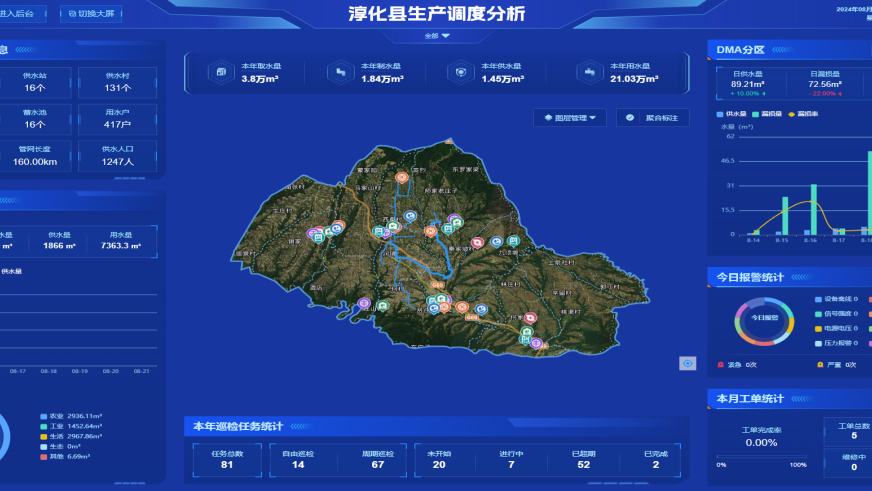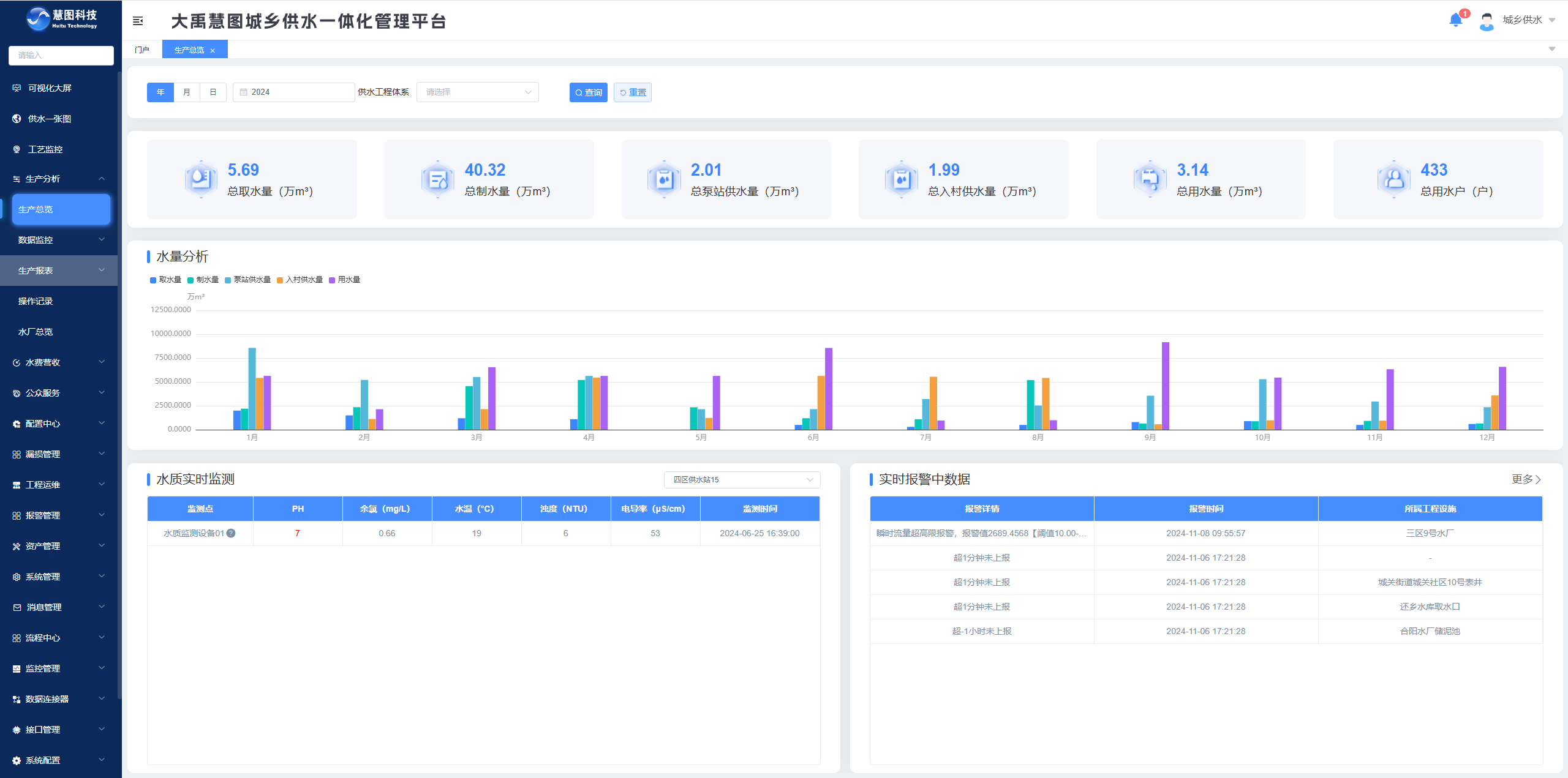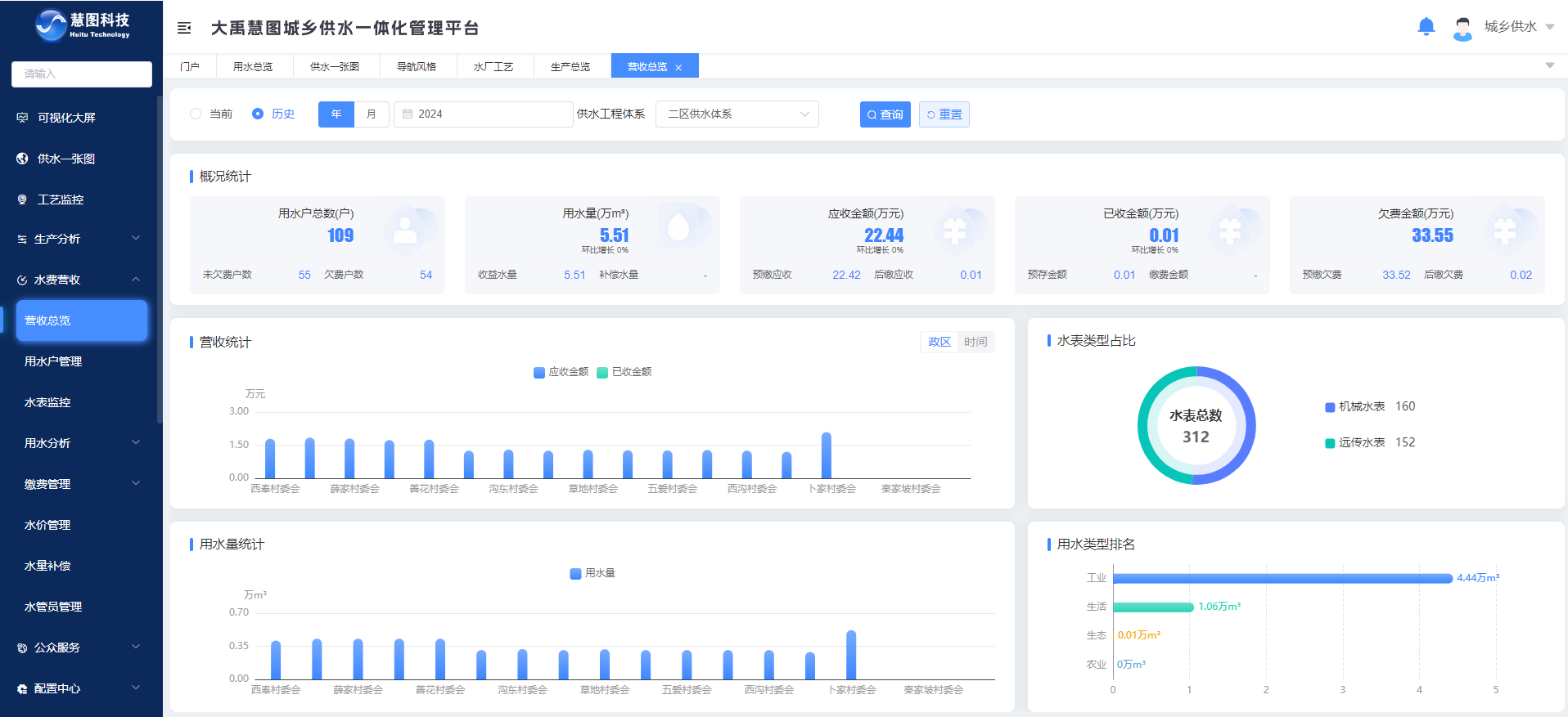 ͨ¹ýÐÂÒ»´úÐÅÏ¢ÊÖÒÕÓëË®ÀûÓªÒµÉî¶ÈÈںϣ¬ÊµÏÖ¹©Ë®ÏµÍ³µÄÊý¾Ý×ÊÔ´»¯¡¢¹ÜÀí׼ȷ»¯¡¢¾öÒéÖǻۻ¯¡£ÒÔÊý¾Ý¼ÝÊ»²ÕµÄ·½·¨Ö±¹Ûչʾ³ÇÏ繩ˮһÌ廯¹¤³ÌµÄÖÆË®¹¤ÒÕ¡¢Ë®Á¿¡¢Ë®ÖÊ¡¢Äܺġ¢¹©Ë®ÔËά¡¢ÊµÊ±±¨¾¯¡¢ÊÓÆµ¼à¿Ø¡¢Â©Ëðî¿Ïµ¡¢¹¤³ÌÂþÑܵÈÖ¸±êºÍÐÅÏ¢¡£´ËÄ£¿éÖ÷Òª°üÀ¨Ë®·ÑÓªÊÕÆÊÎö¡¢ÖÇ»ÛË®³§¼à¿Ø¡¢¹©Ë®¹¤³ÌϵͳÆÊÎö¡¢Éú²úµ÷ÀíÆÊÎöµÈ¡£