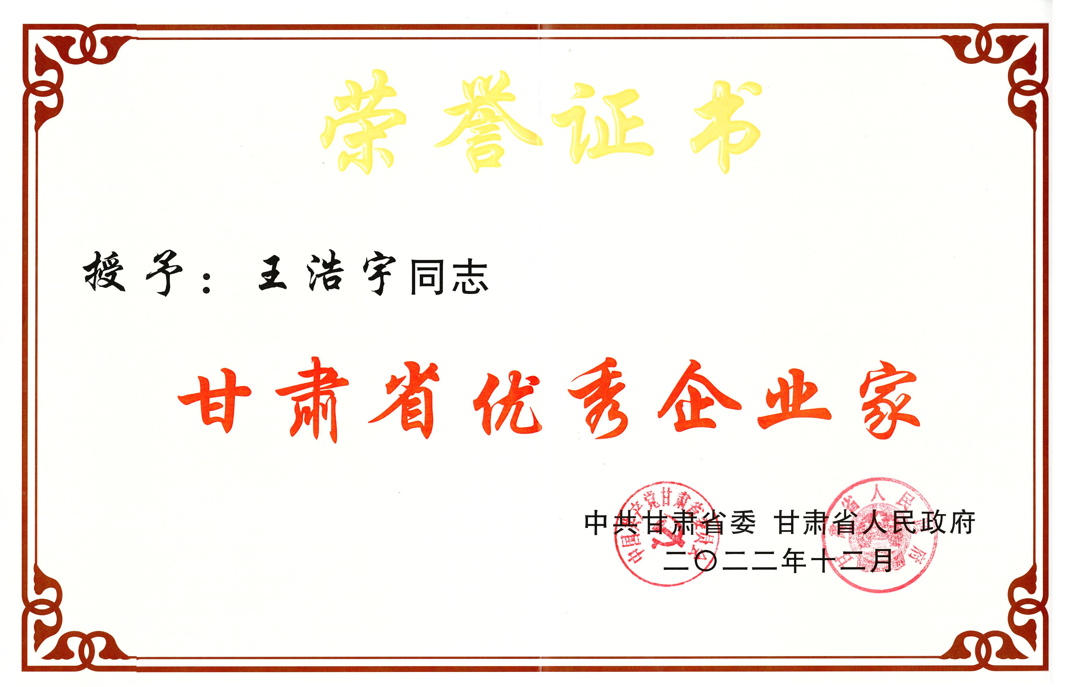 甘肃省先进企业突出孝顺奖